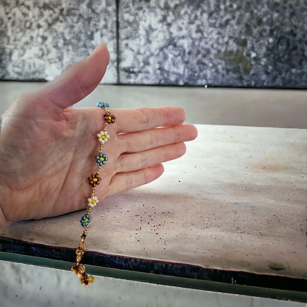 Handmade whimsical flower bracelets made of mixture of colors! Part of our Arm Charm collection!